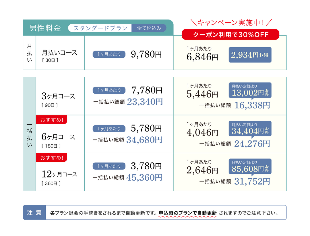 6ヶ月プラン:24,800円(税込・1ヶ月あたり4,133円)